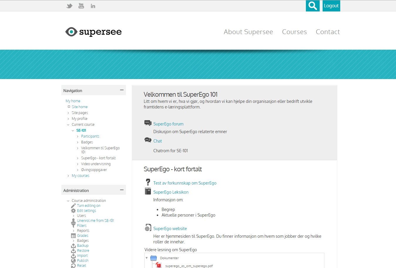supersee4 supersee3 supersee2 Supersee – a learning management system (2014-2015) Supersee is learning managment system of SuperEgo AS. Development done in Moodle and PHP.